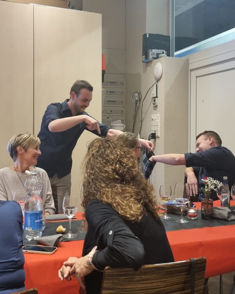 Unsere diesjährige Personalfeier im Trüllental war ein herzlicher, fröhlicher und rundum genussvoller Anlass. Das köstliche Essen verwöhnte uns alle und der überraschende Besuch des Zauberers sorgte für Staunen und zahlreiche Lacher. Besonders beliebt war auch die Fotobox – viele tolle und witzige Schnappschüsse sind dabei entstanden! Und beim Karaoke zeigte sich einmal mehr, dass es in unserem Team so manches, versteckte Gesangstalent gibt