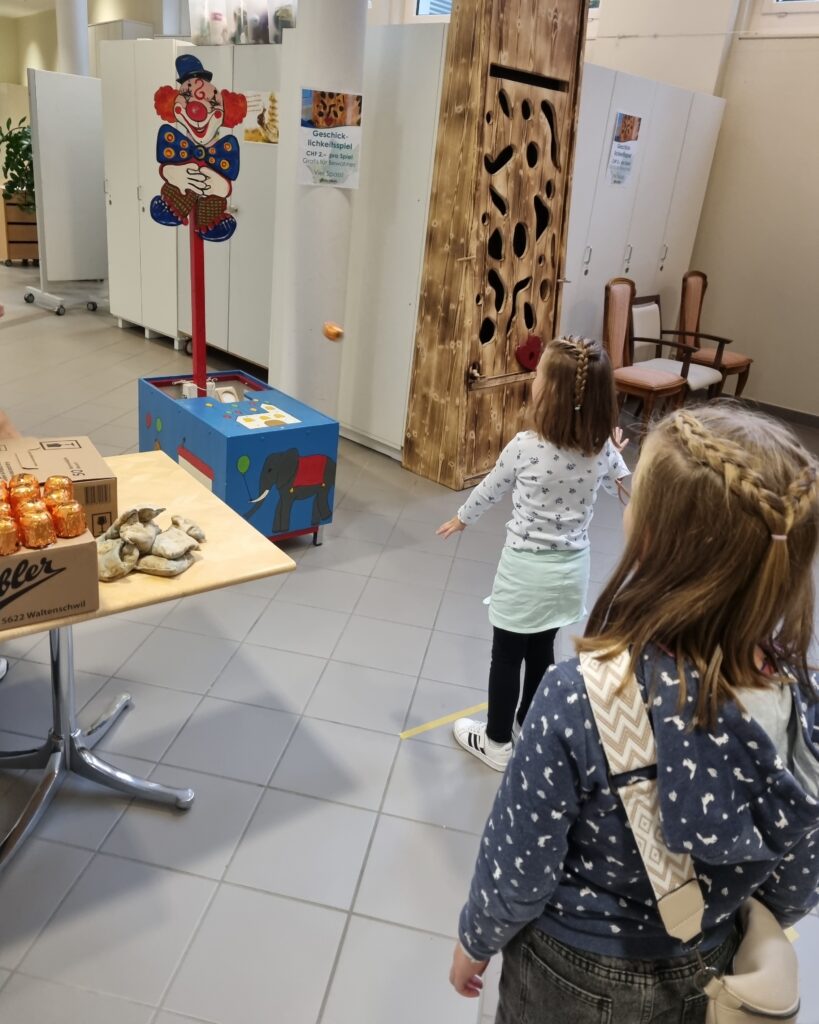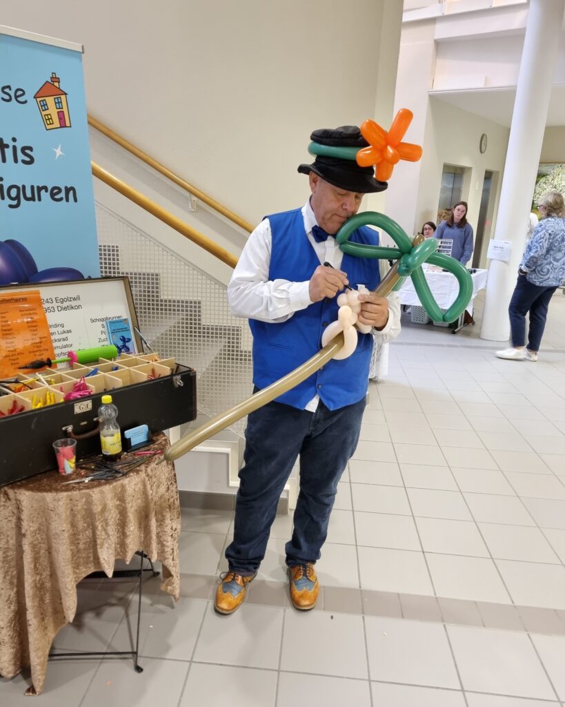 Die diesjährige Kilbi begeisterte mit einem vielfältigen Spiele-Angebot: Beim Päcklifischen, am Geschicklichkeitsspiel oder bei der Schokokussschleuder konnten sich die kleinen und grossen Gäste nach Herzenslust austoben und ihre Geschicklichkeit unter Beweis stellen. Weitere Highlights für die Kinder war die kreative Bastelecke sowie der Besuch eines Ballonkünstlers, der mit viel Fantasie bunte Tiere aus Ballons formte und damit für staunende und lachende Gesichter sorgte.