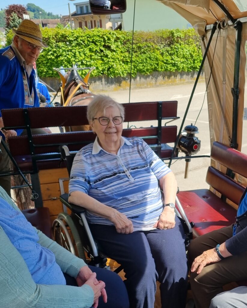 Mit leuchtenden Augen und vielen frohen Gesprächen genossen unsere Bewohnenden die entschleunigte Fahrt, das Klappern der Hufe und den Blick ins Grüne. Für viele war es eine willkommene Abwechslung, die Erinnerungen weckte und einfach gut tat.