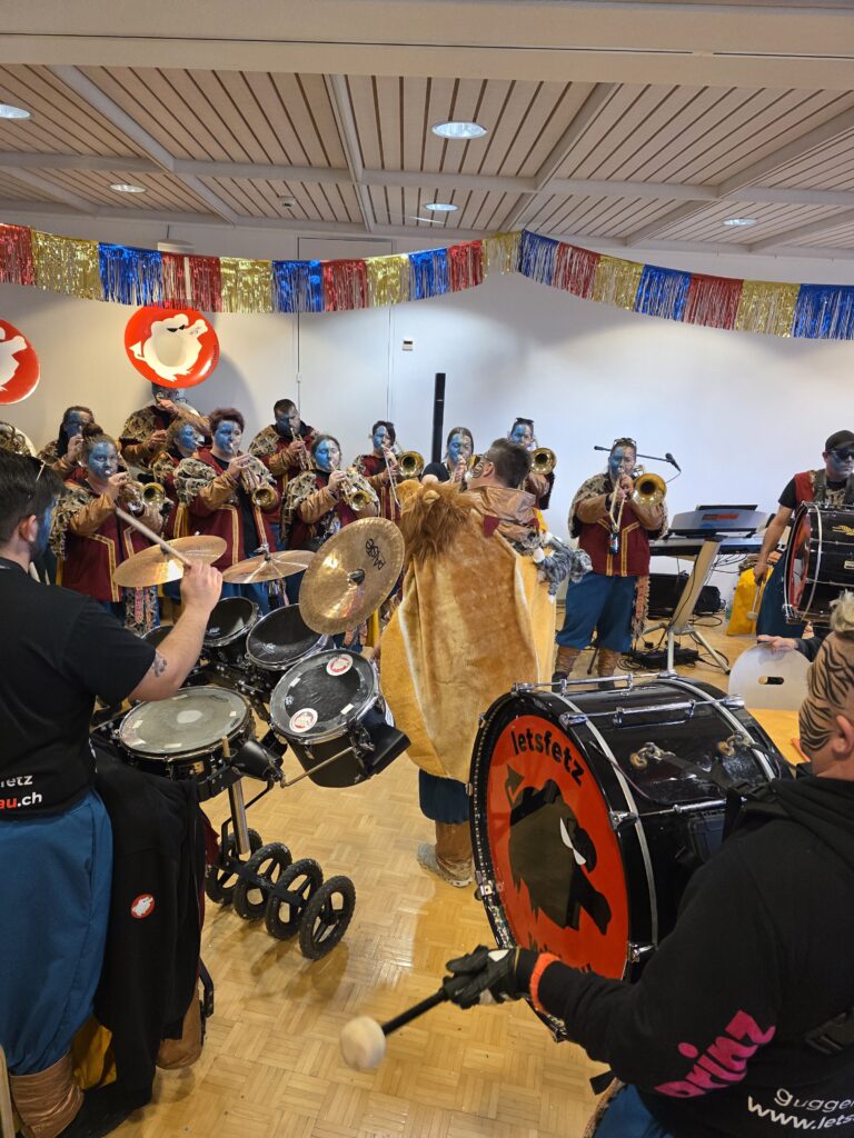 Als die Guggenmusiker „Let’s Fetz“ loslegten, bebte der Saal wie ein Saloon zur Goldgräberzeit. Mit ihren mitreissenden Rhythmen und jeder Menge Power haben sie unsere Bewohnenden und Mitarbeitenden gleichermassen mitgerissen.